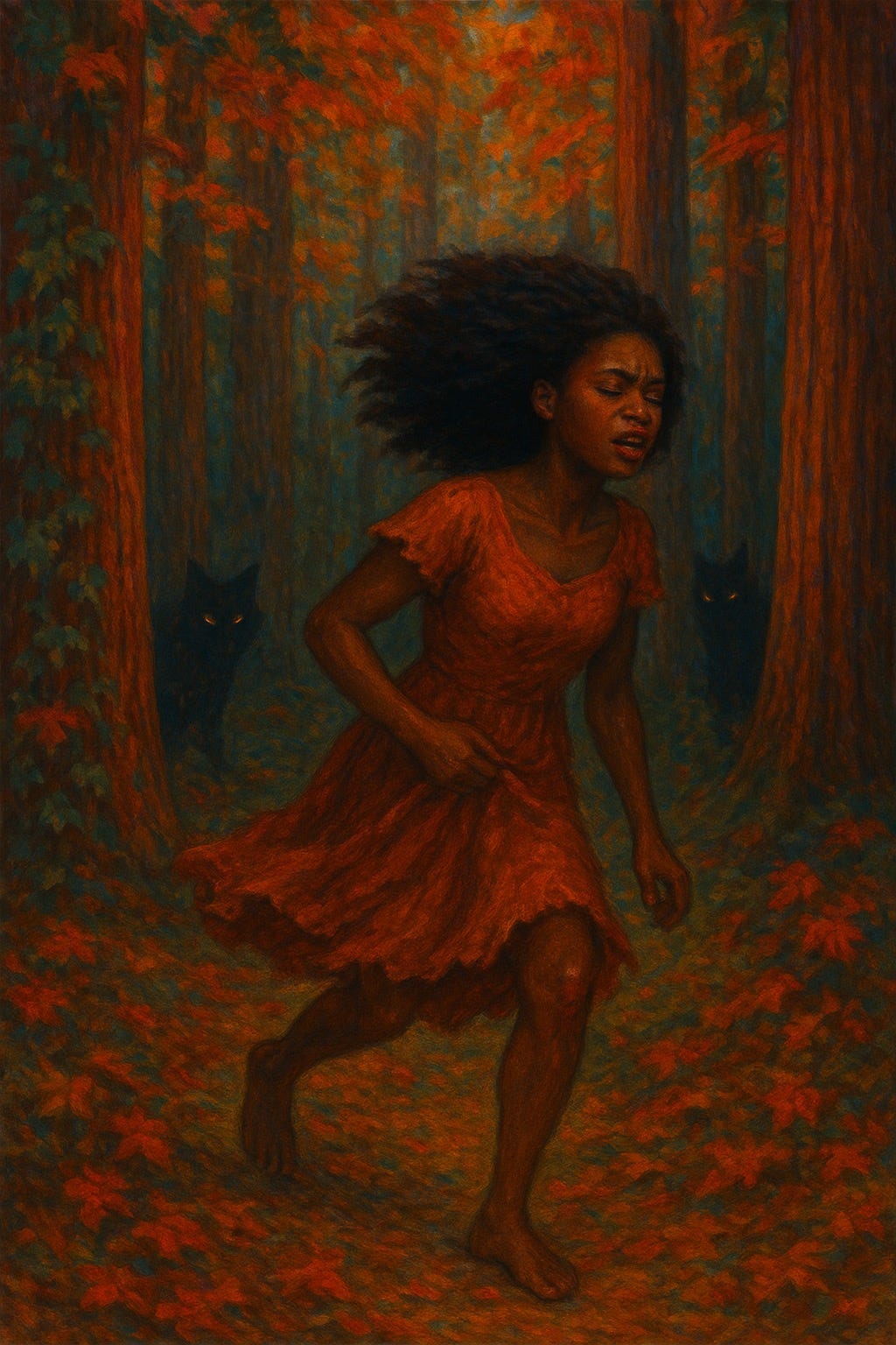 this dress flows like an autumn breeze—but I scrape my knees climbing redwood trees